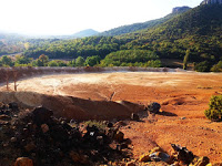 της μεταφοράς με τον εναέριο σιδηρόδρομο) για την κατεργασία του στο εργοστάσιο εμπλουτισμού. Τα σε πολύ μεγαλύτερες ποσότητες εξορυχθέντα στείρα εκμετάλλευσης αποτέθηκαν γύρω από το ορυχείο (Εικόνα 1). Το επιφανειακό ορυχείο απέκτησε με την πάροδο του χρόνου μεγάλες διαστάσεις. Το δυτικό, σχεδόν κατακόρυφο τοίχωμά του έφτασε το ύψος των 50 m περίπου δημιουργώντας άμεσο κίνδυνο για την τύχη των εργαζομένων σε περίπτωση κατακρήμνισης. Στο βαθύτερο μέρος της εκσκαφής συγκεντρώθηκαν και λίμνασαν επιφανειακά νερά τα οποία παρά τις αντλήσεις δημιουργούσαν μεγάλες δυσκολίες στην εξόρυξη με αποτέλεσμα να διακόπτονται συχνά οι εργασίες που οδήγησαν το 1997 οριστικά στην παύση της μεταλλευτικής δραστηριότητας.