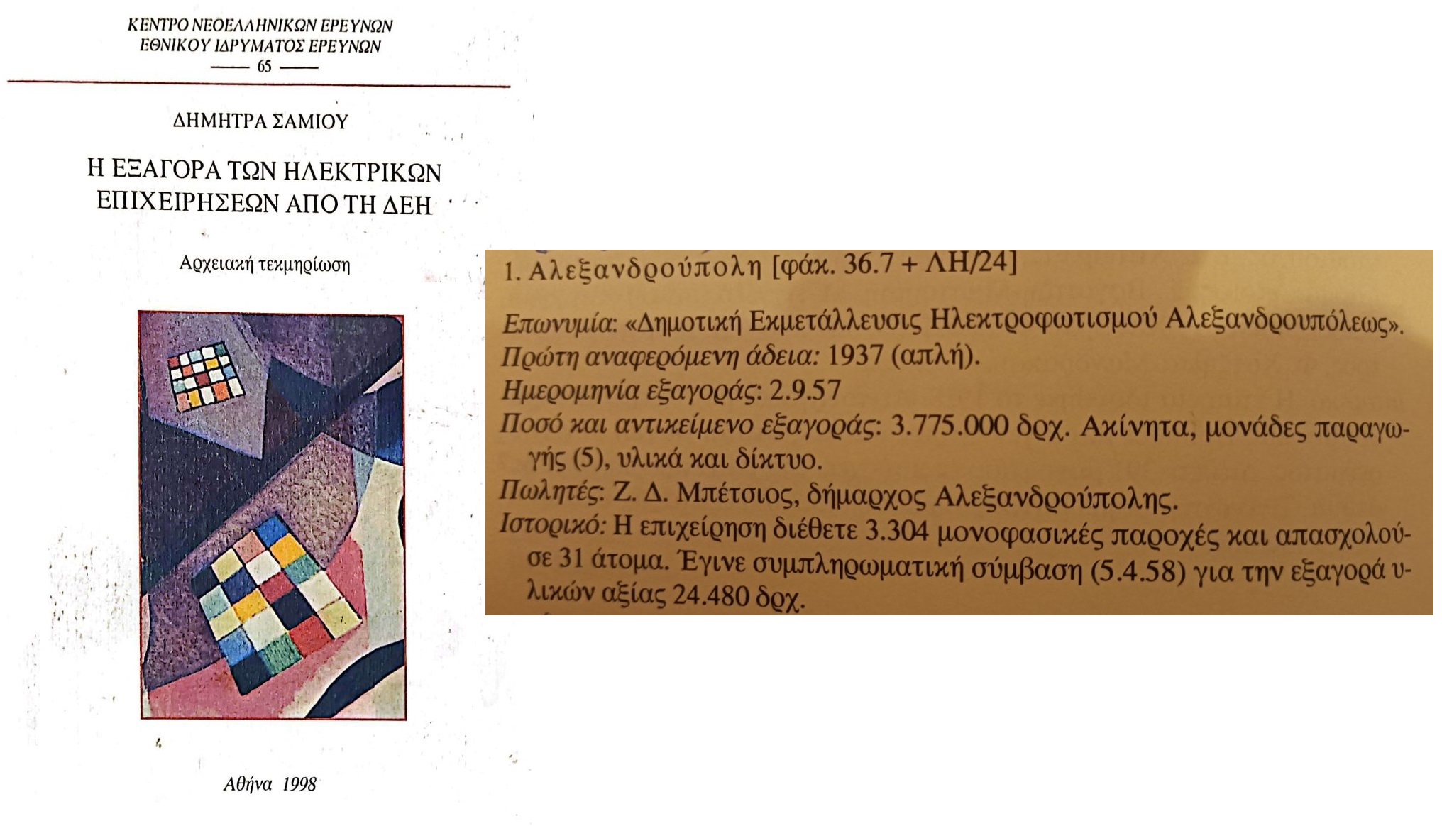 Ηρακλής Φασουράκης, ΔΗΜΟΤΙΚΗ ΕΚΜΕΤΑΛΛΕΥΣΙΣ ΗΛΕΚΤΡΟΦΩΤΙΣΜΟΥ ΑΛΕΞΑΝΔΡΟΥΠΟΛΗΣ, στο Βακαλοπούλου Μ., Δανιήλ Μ., Λαμπρόπουλος Χ.,