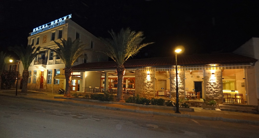 Εργοστάσιο επεξεργασίας σφουγγαριών, από τα μεγαλύτερα στην Ελλάδα, ιδρύθηκε εδώ το 1880. Τα παραδοσιακά κτήρια του παλαιού εργοστασίου, με νέες προσθήκες και επεκτάσεις, μετατράπηκαν σε ξενοδοχείο το 1959 το οποίο εκσυγχρονίστηκε πλήρως το έτος 2002 και 2008. Πηγή : HOTEL BROWN-filoxeno Διασκευή Παλαιάς Σπογγαποθήκης στην Αίγινα σε Ξενοδοχείο, 1967 , αρχιτέκτων Κωνσταντίνος Δεκαβάλλας Πηγή : περιοδικό Δομές