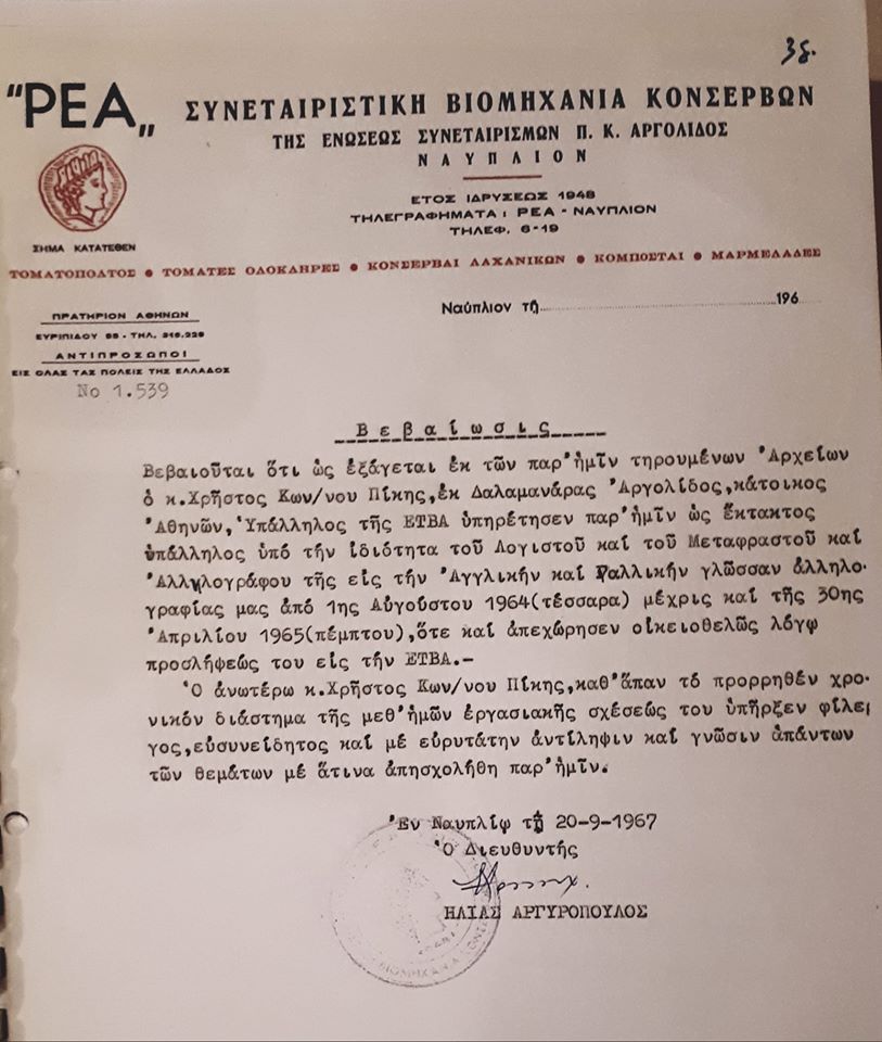 Μαριλένα Βακαλοπούλου, ΣΥΝΕΤΑΙΡΙΣΤΙΚΗ ΒΙΟΜΗΧΑΝΙΑ ΚΟΝΣΕΡΒΟΠΟΙΙΑΣ ΑΡΓΟΛΙΔΑΣ ΡΕΑ, στο Βακαλοπούλου Μ., Δανιήλ Μ., Λαμπρόπουλος Χ.,
