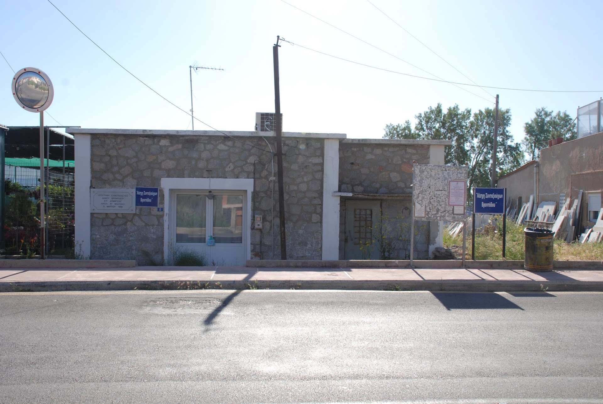 Η προσπάθεια για την ηλεκτροδότηση του δεύτερου σε μέγεθος οικισμού της Χίου, μετά την πρωτεύουσα, ξεκινά το 1937 όταν ο Γ. Μαργαρώνης προσφέρθηκε ν' αναλάβει τον εξηλεκτρισμό της κωμόπολης. Η κήρυξη του Β Παγκοσμίου Πολέμου, υπήρξε πιθανότατα ο λόγος που οδήγησε την προσπάθεια σε ναυάγιο. Μεταπολεμικά, ο δήμος Βροντάδου, ανέλαβε να φέρει σε πέρας το εγχείρημα. Η άδεια δόθηκε το 1949 και σύμφωνα με επιγραφή που τοποθετήθηκε από τον πρώην Δήμο Ομηρούπολης, εγκαινιάστηκε στις 5 Μαρτίου 1954, επί δημαρχίας Νικολάου Αγαπητού Βασιλάκη, φαρμακοποιού. Στις 06 Φεβρουαρίου 1962, εξαγοράστηκε από τη Δ.Ε.Η, επί δημαρχίας του Ν. Α. Βασιλάκη. Το έτος της εξαγοράς, διέθετε δυο πετρελαιομηχανές και μια γεννήτρια, 1140 μονοφασικές παροχές, 10 παροχές τριών αγωγών και 11 παροχές τεσσάρων αγωγών, ενώ το προσωπικό ανερχόταν σε πέντε άτομα. Το κτίριο της “Ηλεκτρικής” του Βροντάδου, αποτελεί χαρακτηριστικό δείγμα βιομηχανικού κτιρίου της εποχής που κατασκευάστηκε. Έχει κατασκευαστεί με τοιχοποιία από τοπικούς λίθους, ενώ υπάρχει και χρήση οπλισμένου σκυροδέματος στα υποστυλώματα και στη πλάκα της οροφής. Το βόρειο και μεγαλύτερο τμήμα, φιλοξενούσε το μηχανοστάσιο, ενώ ο νότιος μικρότερος χώρος γραφείο και αποθήκη. Στην οροφή η δεξαμενή ύδατος, που σήμερα δεν διασώζεται. Σήμερα στεγάζει τη “Λέσχη Συνταξιούχων Βροντάδου”.