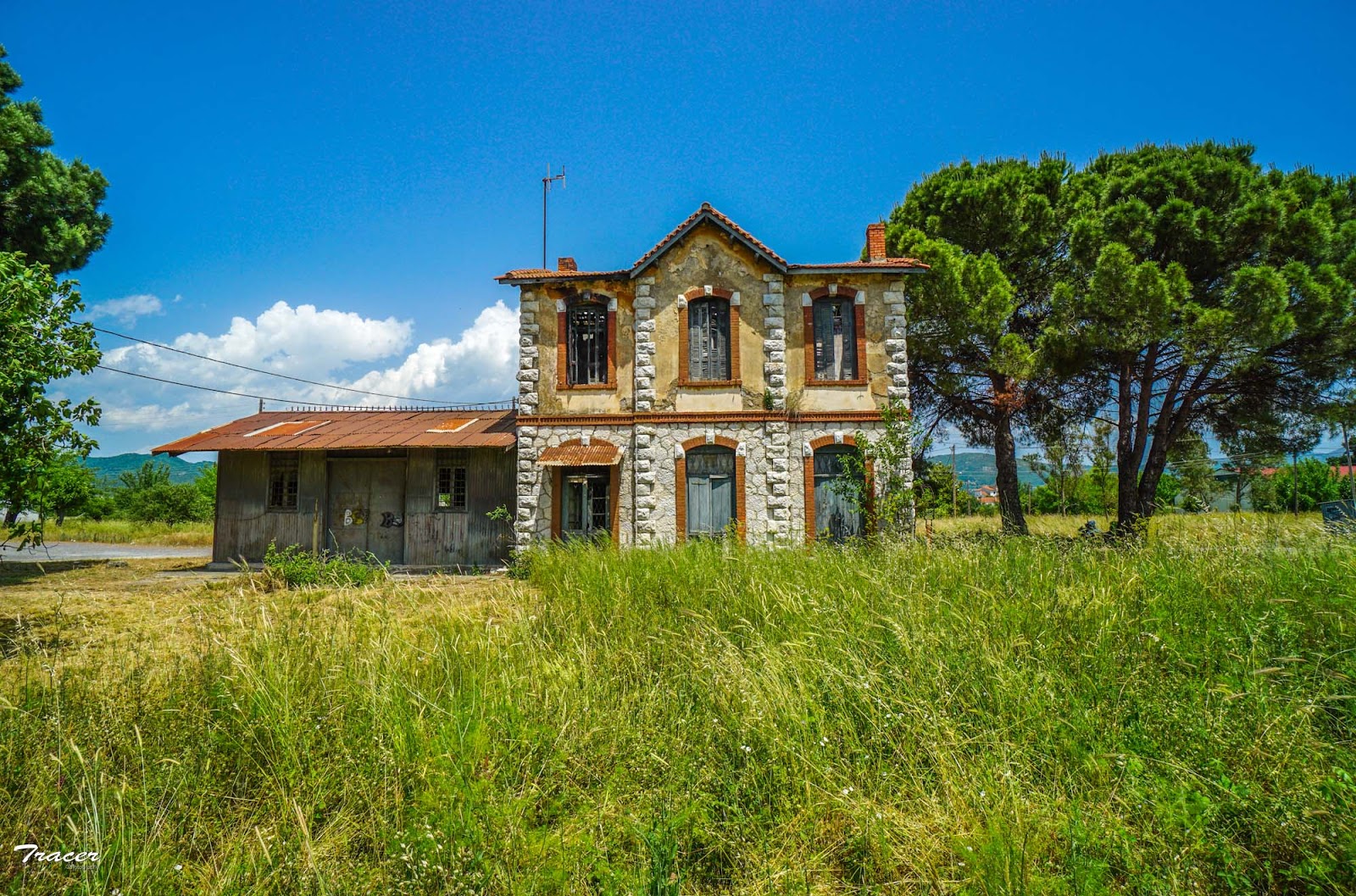 Το κτίριο του Σταθμού με την αυλή και οι τουαλέτες.